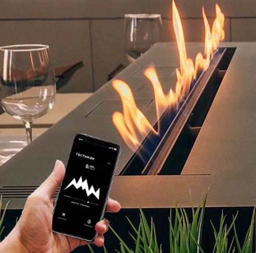 Зажечь огонь можно одной кнопкой на пульте д/у (нажал на кнопку - зажегся огонь, нажал еще раз - огонь потух).